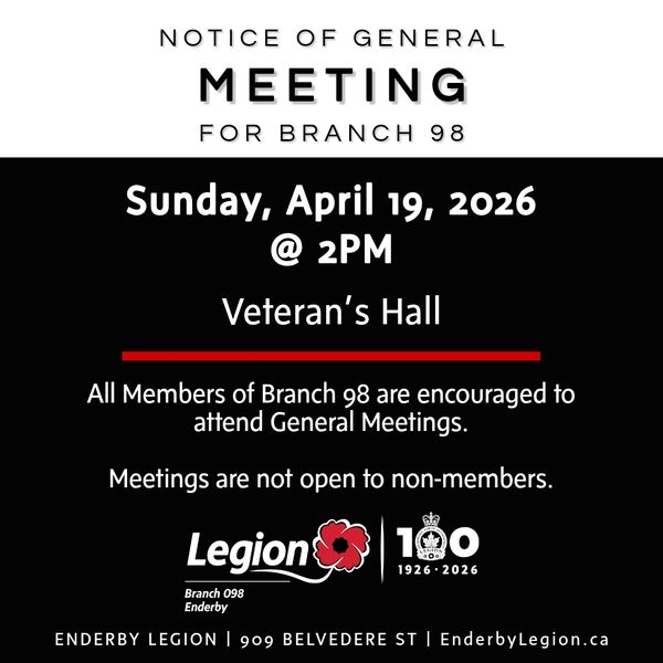 NEXT GENERAL MEETING: SUNDAY, APR 19, 2026 @ 2PM IN VETERANS HALL